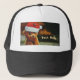 Niedliche Welpe mit Weihnachtskappe und eigenem Te Truckerkappe