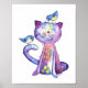 Niedliche Whimsical Lila Katze mit Vögeln Poster