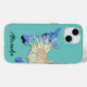 Niedliche Babyziege farbenfrohe Tier Art individuelle Name iPhone Gehäuse. Einfach mit der einfachen Vorlage mit modernem Typografie-Skript personalisieren. Adorable Springen Baby Pigmy Ziege Illustration in schönen farbenfrohen Aquarelltönen Blau, lila, Gelb und Orange auf einem aquamarinen Hintergrund. Ein ideales Geschenk für Farm-Tierfreunde. Original-Kunstwerk der Künstlerin Catherine Sweetman.