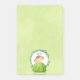 Große Klebrigen mit einer Illustration eines kleinen Affen, der hinter einem grünen Buschhaufen Sprichwort hallo. Umgeben von einem Kranz tropischer Blätter. Set auf einem olivgrünem Aquarell.
