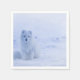 Papierservietten mit einem Foto eines weißen arktischen Fuchses. Eine winterlich schneebedeckte Landschaft umgibt dieses reizende Geschöpf.