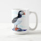 Niedlicher Puffsänger mit seinem typisch schwarz-weißen Gefieder und seinem bunten Schnabel, stehend auf einem Felsen, im Ozean. Original Vector Illustration Copyright BluedarkArt The ChameleonArt.