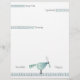 Niedlicher kleiner blauer und grüner Vogel, der in seinem Schnabel eine Küchenschneedecke mit dekorativen Rändern an Rezeptorbrille zum Kochen oder Backen von Rezepten für Ihr persönliches Kochbuch oder zum Teilen Ihrer Kochrezepte hält.