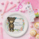 Niedlicher Bär, gelbe Blume und Blumenkranz Pappteller