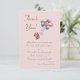 Niedliches Bären und Balloons Theme Flat Dankeschön Kartendesign ist der perfekte Weg, um Ihren Gästen nach Ihrer Babydusche zu danken. Design zeigt das bezaubernde Bild eines kuscheligen Teddybären, der einen rosa Bogen trägt und an einem Haufen Ballons festhält. Die Worte "Danke!" werden in dekorativer Schrift in der oberen links Ecke angezeigt. Unterhalb des Bildes wird Ihr anpassbarer Text in Goldschrift angezeigt. Konzipiert, um mit den Niedlichen Bären und Balloons Themed Einladungen und Zubehör zu koordinieren.