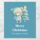Niedlicher Bär und Weihnachtsbaum Urlaub Aquamarin Weinetikett