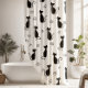 Duschvorhang mit einem schwarzen Katzenmuster Set auf weißem Hintergrund. Verwenden Sie unseren Farbwähler, um den Hintergrund von weiß zu ändern.