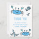Niedlicher Blue Crab Sea Animals Junge Geburtstag Dankeschön Karte. Dieses Design kommt mit niedlichen blauen Meerestieren zeichnend und danke Ihnen Text. Fügen Sie Ihren Namen und Text hinzu, und machen Sie einen niedliche Geburtstag Dankeschön-Karte für die Geburtstagsparty eines Jungen.
