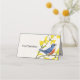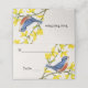 Diese gefaltete stehende Platzkarte für Ihre Party, Veranstaltungen und Hochzeiten ist weiß mit einem niedlichen kleinen roten und blauen Vogel, der auf einem Ast mit hübschen gelben Blumen sitzt. Passen Sie den Namen und die Tischnummer sowie den Text auf der Rückseite mit den Vorlagen an.