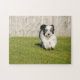 Niedlicher Bobtail-Schafhund läuft und spielt im Gras. Funny lil Old English Sheepdog.