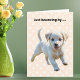 Schick herzliche Wünsche für eine schnelle Erholung mit dieser bezaubernden Welpenkarte. Die Karte fotografiert einen niedlichen, lebendigen Welpen auf einem pastellfarbenen Pfirsichhintergrund mit Pfotendesign. Die Meldung "Einfach vorspringen.." auf der Kartenvorderseite wird gefolgt von "um dir eine schnelle Erholung zu wünschen". Perfekt für Hundefreunde und alle, die mit Ermutigung, Wohlgefallen und einem niedlichen Schub der Welpen-Liebe zu tun haben.