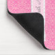 Ein elegantes und feminines Vintages Medaillon rosa Damastmuster Mousepad mit einem stilvollen und gürtelhaften Band-Banner und einem niedlichen dekorativen Doppelbogen. Personalisieren Sie dieses hübsch rosa Büroaccessoire im altmodischen Stil, indem Sie Ihren Namen in den benutzerdefinierten Textbereich einfügen. Flachbild, nicht echtes Band. Design-Urheberrecht von @OhSoGirly