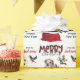 Das wiederholte Muster auf diesem niedlichen Weihnachtsverpackungspapier ist ein Bild eines bezaubernden Bulldog Welpen, der aus einer rot-weißen Weihnachtsgeschenktüte herausguckt. Hinter ihm steht ein Gezeter aus heiligen und roten Beeren. Ein roter und schwarzer Bullfinch-Vogel wird bald landen. Stilisierter roter und schwarzer Büffel karierter Text sagt MERRY CHRISTMAS", und "Happy New Year" ist in dunkelgrün. Ihre eigene Unterschrift ist in zwei Felder für Sie zu personalisieren. Stellen Sie sicher, dass Sie die passenden Geschenketiketten sehen.