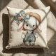 Niedlicher Bunny in Overalls mit Strohhut & Bow Kissen