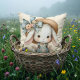 Dieses skurrile Design besticht durch einen unwiderstehlich niedlichen, weißen Hasen in zauberhaften Dim-Overalls, mit pastellfarbenen Stoffpatches geschmückt und mit einer gepanzerten Bluse gepaart. Der übergroße Strohhut des Hasen, detailliert mit einem traumhaft blauen Band und einem zarten Haufen von handgezeichnet Blume, fügt einen Vintagen Cottcore-Flair hinzu. Weiche, malerische Texturen und warme, gedämpfte Farbtöne sorgen für eine gemütliche und nostalgische Ästhetik, die sich perfekt für die Liebe von süßen, geschichtlich inspiriert Bildern eignet. Die ausdrucksvollen Augen und die sanfte Blüte verleihen diesem Hasen eine herzliche Persönlichkeit, die es zu einer reizenden Ergänzung zu den Themen Kinderzimmer, Frühlingsdekor oder saisonales Gießen macht. AI generierte Kunstwerke.
