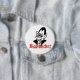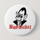 Schwarzweiss-Cartoon des lustigen Vampire mit dem Tropfen des blutroten Bloodsuckertextes. Spaßknopf-Button für Halloween Trick oder treaters. Dieser niedliche Vampire Halloween-Knopf ist in vielen anderen Größen und in Formen verfügbar. Sie können diesen Vampir Halloween-Knopf mit Extratext, wie einem Namen oder einer addierten Mitteilung sogar besonders anfertigen.