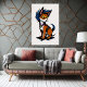 Eine Cartoon-Abbildung eines niedlichen Fuchs mit blauem Haar und einem Halsband, stehend auf weißem Hintergrund. Der Fuchs hat große, ausdrucksstarke Augen und ein spielerisches Lächeln. Das ist eine künstlerische KI.