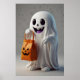 Niedlicher Cartoon Ghost Holding einer Trick-oder- Poster