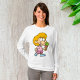 Bleibe stilvoll und komfortabel mit dem langärmeligen T - Shirt dieser Frau mit einem lustigen Cartoon, der eine Eiscreme isst. Die fröhliche Illustration fügt Ihrem lässigen Kleiderschrank eine spielerische Drehung hinzu, die ihn für coolere Tage, lässige Ausflüge oder das Schutzumlegen unter den Jacken ideal macht. Dieses Shirt ist perfekt für Frauen, die skurrile Designs Liebe haben. Es ist ein vielseitiger Weg, Farbe und Persönlichkeit in Ihre alltägliche Mode zu bringen.