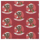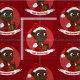Stoff mit einer Illustration eines niedlich lächelnden, glücklichen, schwarzen Mädchens oder eines kleinen Kindes, trägt das Kind rote und weiße Kleidung und hält ein Geschenk; mit bearbeitbarer Textvorlage für Ihren Namen oder Ihre Nachricht, Weihnachtsfeiertagsgestaltung mit rotem Hintergrund