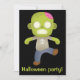 Desteis Cartoon Illustration eines grünen Zombie-Jungen. Ein Teil des Zombie's Gehirns ist sichtbar, und er läuft mit den Armen hoch nach vorne. Die Hose ist blau und das Shirt beige mit einem Schädelbild.