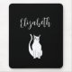 Niedliches Pet Cat Schwarzes Mauspad, mit handgezeichnetem winking kitty design und anpassbarer Skripttypografie. Eine lustige Ergänzung zu Ihrem elektronischen Zubehör.