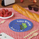 Niedlicher Chamäleon, der einen Bug-Cartoon fängt Pappteller