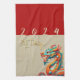 Chinesischer niedlicher Drache (Abbildung) + Golden "Jahr des Drachen" (Original-Handschrift) + groß 2024, um nach Bedarf anzupassen. Design auf Küchenhandtuch mit rotem Hintergrund. Sie können Jahr (Schriftart, Farbe, Größe und Position) und Hintergrundfarbe leicht ändern, indem Sie auf die Schaltfläche Anpassen klicken. Verfügbar mit anderen Papierschnitten. Perfekt für Chinesisch und Vietnamesisch Neujahr des Drachen 2024 oder Geburtstag (Menschen geboren im Drachenjahr).