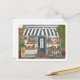 Envoyez à quelqu'un une note spéciale avec cette carte postale saisonnière Coffee Shop avec un tableau original d'aquarelle d'un café et café pittoresque! Le Common Grounds Coffee House est prêt à servir pour la première fois de la saison des lattes d'épices citrouilles ainsi que des pâtisseries fraîches. Scène tranquille, cette vitrine d'automne vient d'ouvrir, et les chipmunks apprécient les restes des clients. Une carte vraiment unique pour tout le monde, ce petit bout de courrier a été créé comme page de septembre d'un calendrier et sert aussi d'illustration encadrable. Vide à l'intérieur pour écrire une note à des amis et à la famille.