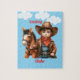 Lassen Sie sich von diesem niedlichen Puzzle mit einem hübschen kleinen Cowboy mit Hut und rotem Bandana verzaubern. Er ist von seinem bezaubernden Tierfreund umgeben, einem freundlichen, braunen und weißen Pferd mit blauem Hintergrund, kann mit jedem Jungen personalisiert sein, den Sie wollen.