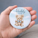 Mit unserem Teddy-To-Be Baby Shower Button, der perfekte Zusatz zu jedem Baby-Duschensemble! Sie warten gespannt auf die Ankunft eines neuen Babys und suchen nach einer Möglichkeit, die freudigen Neuigkeiten zu teilen? Unser "Daddy-To-Be" Knopf Abzeichen bietet Ihnen ein angenehmes Mittel, Ihre Begeisterung und Stolz zum Ausdruck zu bringen, einen kleinen Jungen in der Familie willkommen zu heißen. Dieses runde Button zeigt eine bezaubernde Szene mit einem niedlichen Teddybär, der mit einer blauen Krawatte geschmückt ist und vor einem Hintergrund eines ruhigen blauen Himmels und flauschiger weißer Wolken schwingt. Der Bär verkörpert die Wärme und Unschuld der Kindheit und ist damit ein ideales Symbol für die bevorstehende Ankunft. Mit seiner einfachen Schriftzeichen unterstreichen die Worte "Daddy-To-be" elegant die besondere Rolle des Trägers in der neuen Ergänzung der Familie. Ob getragen von dem erwartenden Papa oder als nachdenkliches Geschenk präsentiert, dieser Knopf verwandelt sich in einen gepflegten Pfeiler dieses fröhlichen Ereignisses. Indem Sie sich mit unserem "Daddy-To-Be"-Button-Abzeichen verwöhnen lassen, fühlen Sie sich wie in der Babydusche. Bestellen Sie jetzt und feiern Sie die Vorfreude, einen wertvollen Jungen in Ihrer Familie willkommen zu heißen!