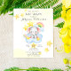 Niedlicher Babyelefant in der Wolke. Es ist eine kleine Babydusche-Einladung. Pastellfarben können die Dekoration mit Sternen, Mond, Ballons, Tiermustern vermischen