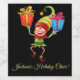 Niedlicher Elf mit Weihnachtspaketen Weinetikett