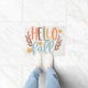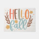 Niedliche Pinsel gestrichen Typografie "Hallo Fall" Thema auf weiß gekalkten Holz. Begrüßen Sie Ihre Gäste mit einer saisonalen Türe für Herbst, Erntedank und Halloween.
