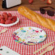 Niedlicher, farbiger, benutzerdefinierter Text der Pappteller
