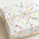 Dieses Geschenkpapier aus der Packung zeichnet sich durch ein niedliches und farbenfrohes Punktmuster aus.