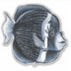 Niedlicher Fisch-Aufkleber mit einer monochromen digitalen Abbildung eines lustigen Engelfisches mit Wimpern gezeichnet mit digitaler Tinte. Fische haben keine Wimpern, aber das hat sich extravagant gemacht.