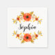 Papierservietten mit korallenfarbenen Blume auf weißem Hintergrund und anpassbarem Text.