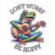 Cartoon Toad oder Frosch spielen die akustische Gitarre. Farbenfrohe ai art für musik liebhaber. Witziger Pun und Zitat, keine Sorge, sei hoppy.