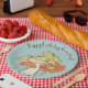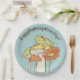 Fügen Sie dem nächsten Party eine niedliche Touch mit diesen personalisierten Tellern hinzu. Sie sind bereit, mit Ihrer eigenen, individuellen Botschaft in braunen Schriftzeichen personalisiert zu sein und zeigen eine niedliche cotattecore-Style-Abbildung eines Frosches, der auf einem Pilz-Set vor einem hellblauen Hintergrund sitzt.