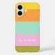 Einfache, große gestreifte Farbblockform in einer hübsch pastellfarbenen Farbpalette aus Gelb, Orange, Minze, Rosa und Moos, personalisiert mit Ihrem Namen.