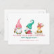 Senden Sie dieses Jahr Ihre Feiertage mit diesen niedlichen Weihnachtszwergen. Eine Gnome hält eine Laterne für ein anderes Gnome, das einen Schlitten mit einem lustigen Rentier-Gnome auf dem Schlitten zieht. Personalisieren Sie es mit Ihren Namen auf der Vorderseite, zusammen mit Ihrer Nachricht und Rücksendeadresse auf der Rückseite.