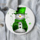 Ein bezaubernder kleiner Weihnachtsschneemann, mit grüner Samtweste und passendem Top-Hut gekleidet, um Ihren Weihnachtsfeiern in diesem Jahr einen festlichen Stil und Spaß zu verleihen.