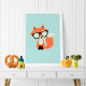 Niedliche Abbildung eines süßen kleinen, roten Fuchses mit einer übergroßen Lesebrille, kann mit einem Namen oder einer individuellen Nachricht personalisiert werden und als perfekte Touch für ein Baby-Kinderzimmer, Kinderzimmer, Kinderspielzimmer, Klassenzimmer, Studentenwohnheim, etc. verwendet werden.