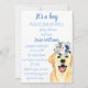 Das ist ein Junge! Niedlicher Labrador Hundelabbilderjunge, geschlechtsneutrale Babydusche. Babyparty. Rustikale, welpenartige Aquarellmalerei von Monika Howarth. Natur, Blumenblauen Illustration Baby Dusche Einladung. Personalisieren Sie es mit Ihren Daten.