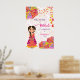 Mehndi niedliche indische Henna Braut mit rosa und gelben Schirmen und Tassels mehndi Begrüßungsschild Poster Sofortdownload.