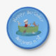 Niedlicher Junge Segelschiff und Hunderuderschiff Pappteller