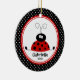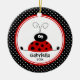 Datiertes niedliches rotes u. schwarzes Marienkäfermädchen Weihnachtsverzierungs-Set auf einer schwarzen u. weißen Polka punktierte Hintergrund. Ein, um zu kommen jahrelang gehütet zu werden Wunder-Weihnachtsgeschenk sure.