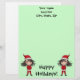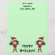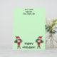 Ein kleines Weihnachtself-Chibi mit langbraunem Haar und einem santa-Anzug auf einem zauberhaften, hellgrünen Briefpapier für die Ferien.