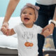 Niedlicher Bodysuit für Neugeborene mit Aquarellbildern von Kürbissen mit dem Text "niedlicher Kürbis im Pflaster".